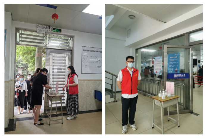 食堂是职工就餐取餐的地方,人员集聚较多,疫情防控刻不容缓。为督促落实“出入戴口罩”“吃饭不聚集”等防疫要求,每天一到饭点,党员志愿者们已笔直挺立在食堂门口,监督员工严格按照指示标志出入食堂、进门洗手再用餐,维持疫情期间食堂的就餐秩序,最大程度减少人员交叉的风险,筑牢员工食堂防疫底线,共同守护“舌尖上的安全”。
