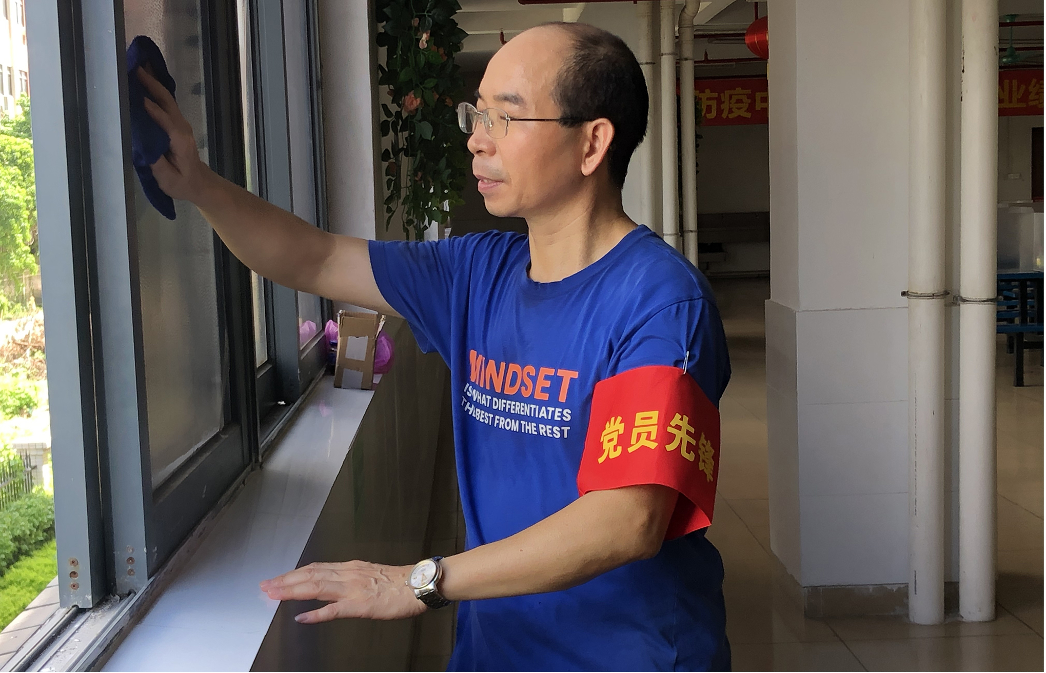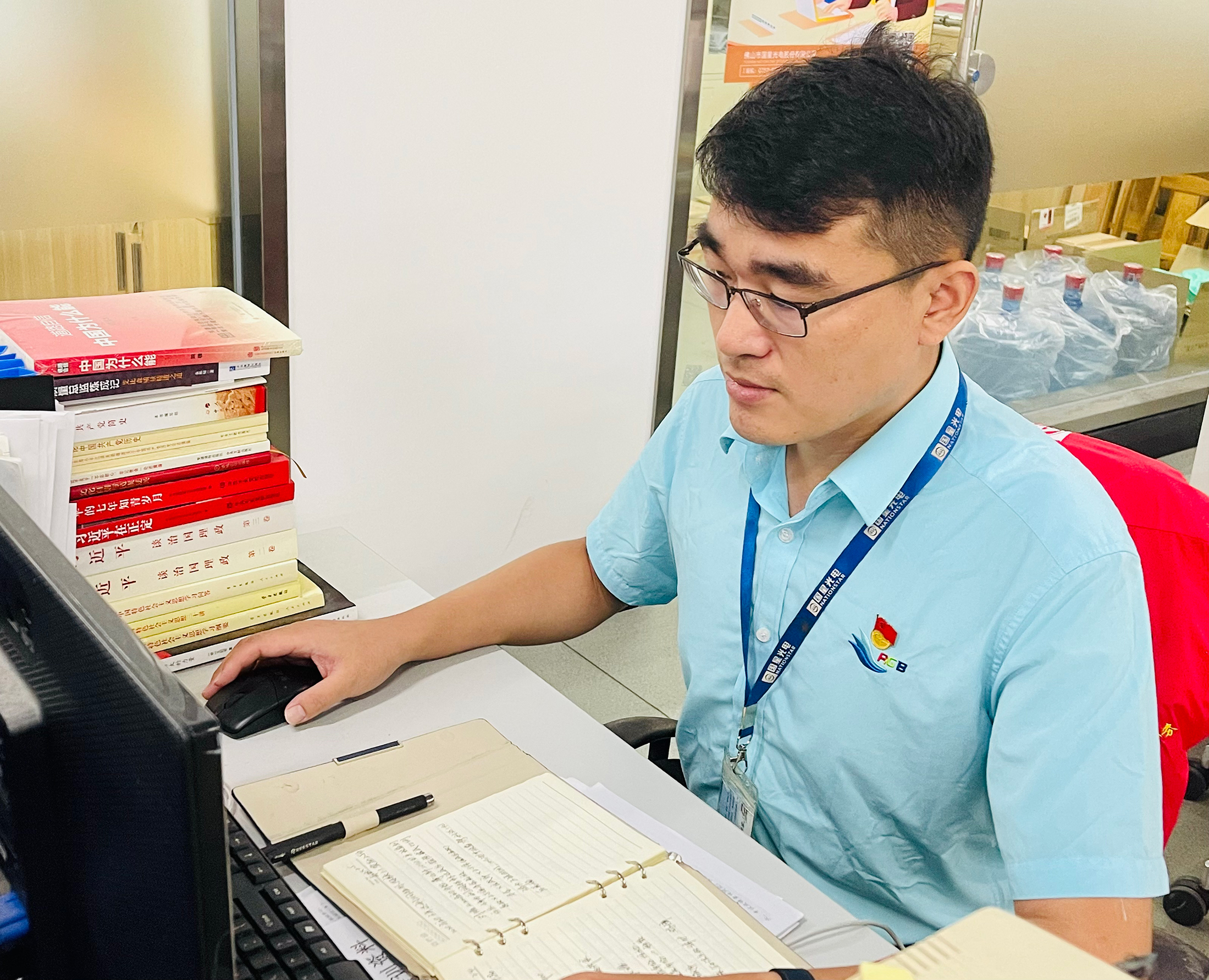 李国院同志是有着23年党龄的老党员,始终不忘宗旨、以身作则,艰苦任务干在前,克服困难冲在先,主动响应党组织疫情防控工作的号召,穿上防化服、背起装满消毒药水的喷雾器“上前线”对公共区域进行消杀工作;带头清洗饭堂风扇、玻璃窗和宿舍空调,维修宿舍电器和处理宿舍楼顶漏水问题。得知公司走廊、楼梯间、茶水间和厕所公共区域照明灯经常出现在光照充足的情况下还继续开灯,造成浪费的情况,他牵头带领党员在各分支线路上安装一个微电脑时控开关,调整电源线路,通过微电脑开关控制各支路的用电,定时开启和关闭,避免了光照充足的时候还亮灯的情况,达到节能降耗的效果。