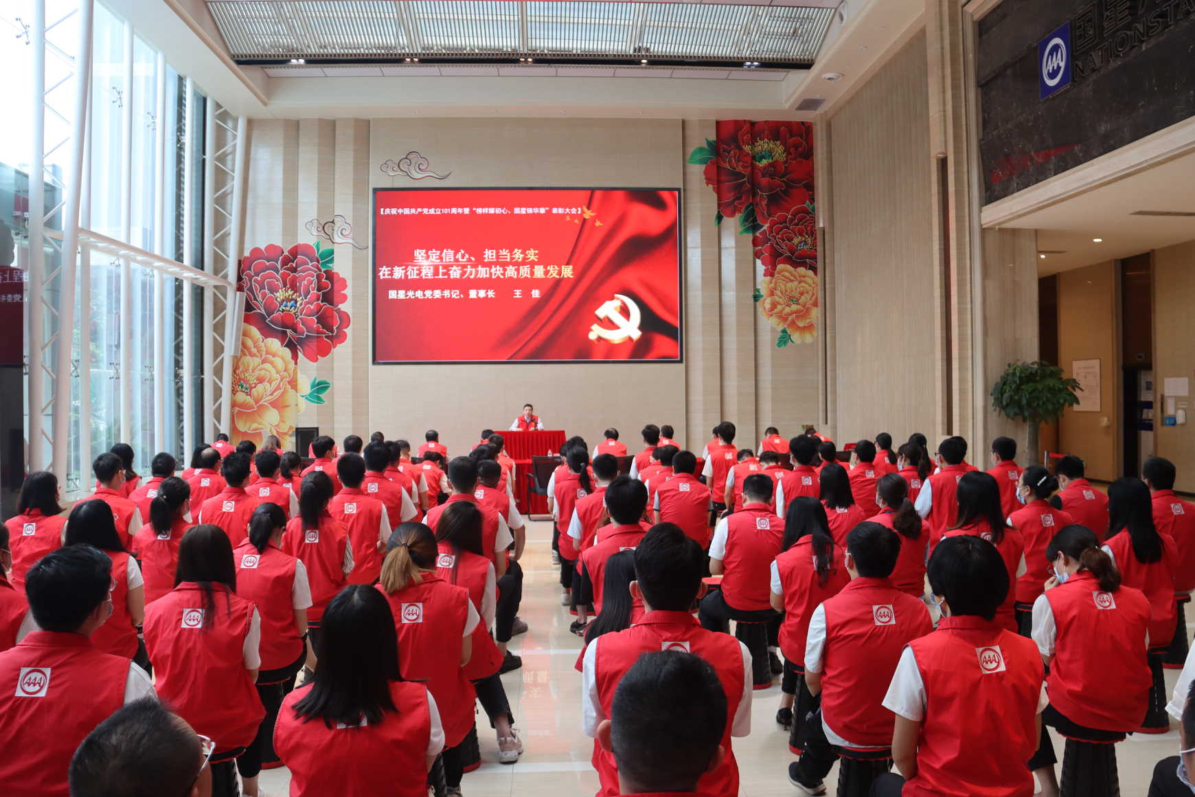 为庆祝中国共产党成立101周年,表彰先进典型,激发干事热情,凝聚奋进力量,6月29日,开云online(中国)光电召开庆祝中国共产党成立101周年暨“榜样耀初心、开云online(中国)铸华章”表彰大会。公司党委书记、董事长王佳出席大会并作专题党课,党委副书记、总裁李程,公司党委委员、高管、支部书记、支委成员和普通党员代表参加会议,会议由党委副书记、董事、工会主席万山主持。