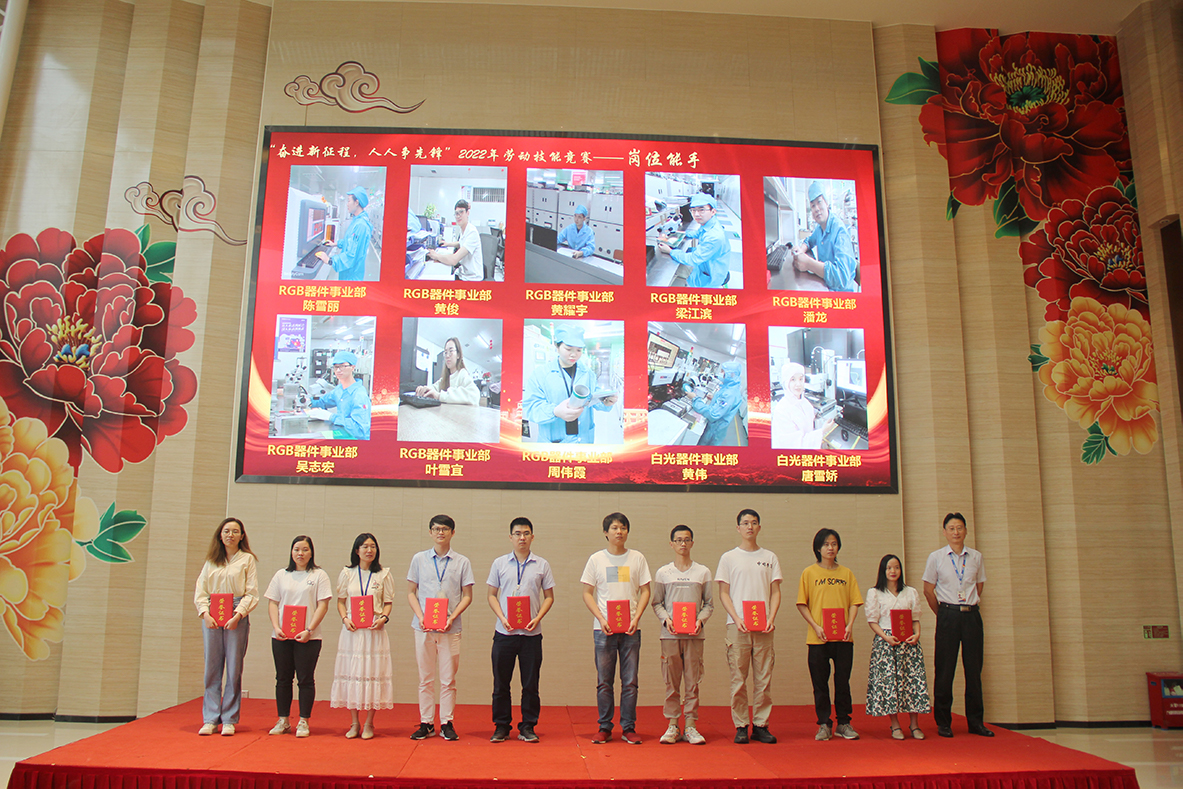 为确保2022年全年目标任务的全面实现,开云online(中国)光电党委认真学习贯彻习近平总书记关于工人阶级和工会工作重要论述特别是关于产业工人队伍建设改革的重要指示精神,以深化“高清显示”党建品牌为抓手,将工会工作纳入党建工作的总体布局,以赋能生产经营为主线开展了“奋进新征程,人人争先锋”劳动技能竞赛和“红旗班组”创建活动,为广大员工“奋进新征程,展现新作为”搭建广阔空间和舞台,推进产业工人队伍建设改革走深走实,致力于在LED封装产业培养一支有志气、有骨气、有底气的工人先锋队。