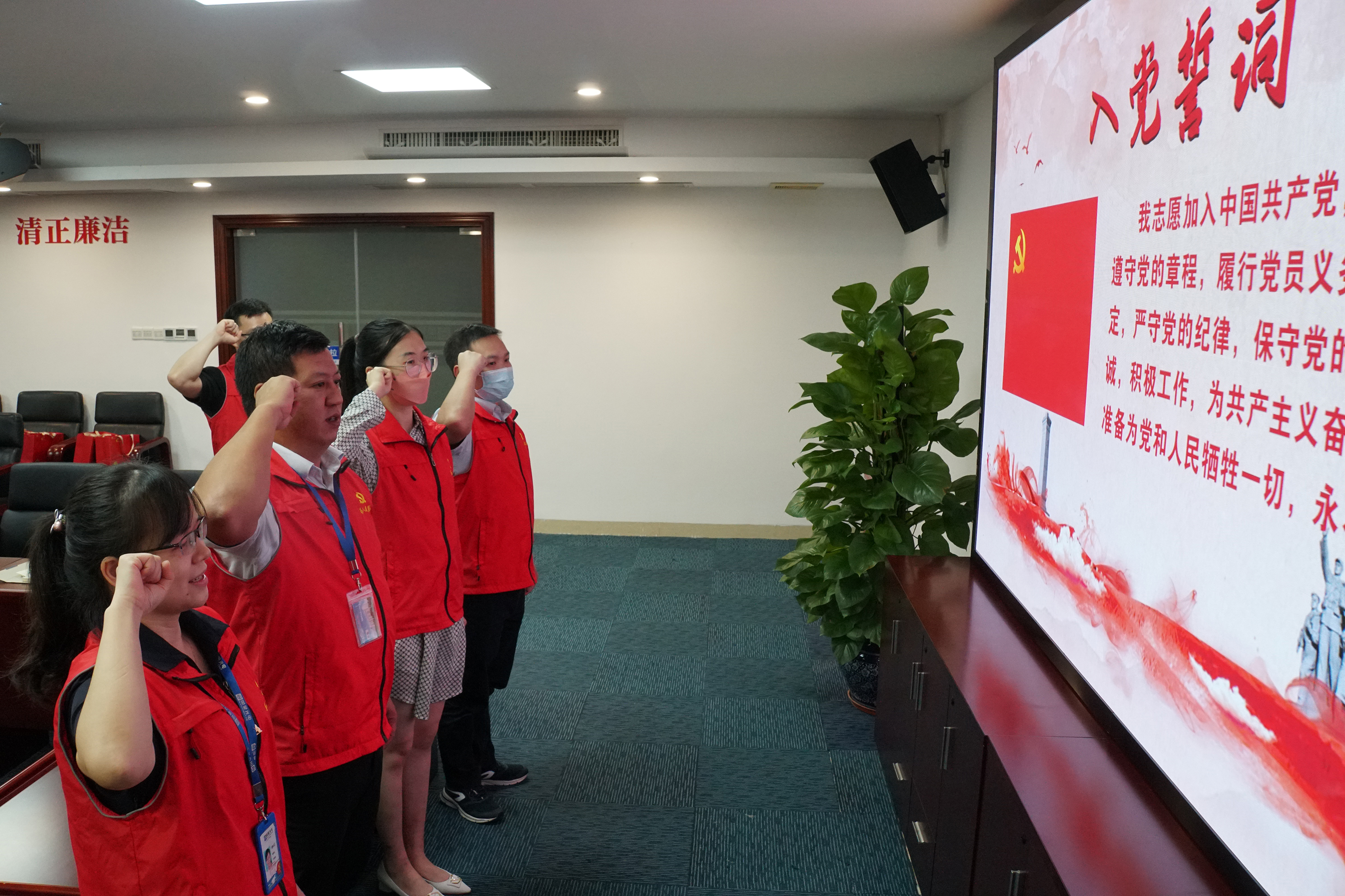“我志愿加入中国共产党,拥护党的纲领,遵守党的章程,……”。现场还举行了党员“政治生日”活动并重温了入党誓词,激发党员身份意识,砥砺初心、踔厉奋发。