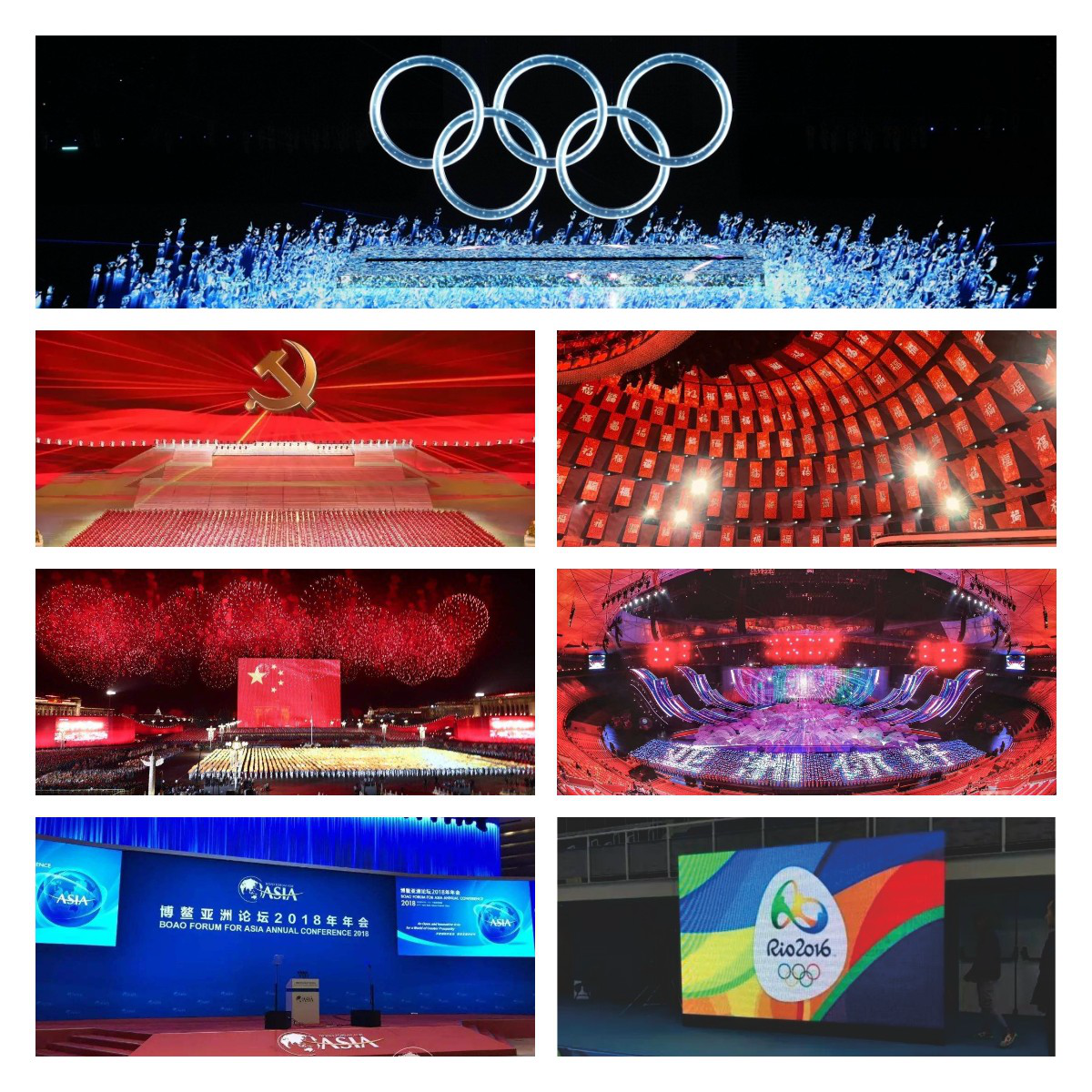 凭借领先的创新显示技术,RGB器件事业部的产品出色服务于2022年北京冬季奥运会开幕式、庆祝中国共产党成立100周年文艺演出、2021年央视春节联欢晚会、庆祝新中国成立70周年联欢活动、亚洲文化嘉年华、博鳌亚洲论坛、里约奥运会、俄罗斯世界杯、金砖峰会等国内外重要盛事;