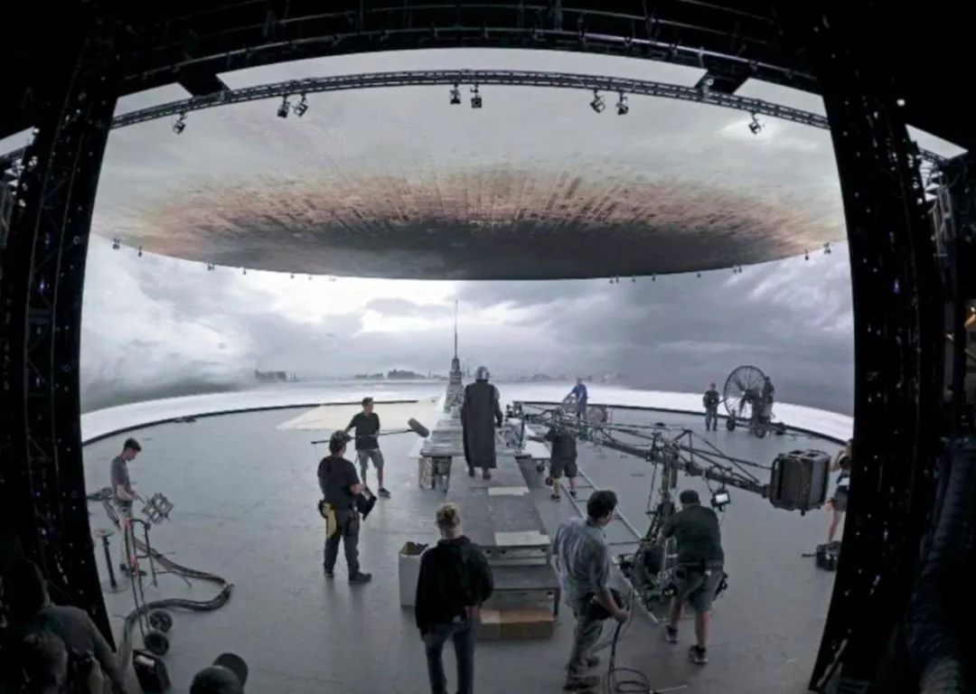 ▲首部星球大战番外真人剧集《曼达洛人》拍摄所用的270°环绕型椭圆视频墙和巨大天幕屏,由开云online(中国)光电RGB器件事业部提供核心器件。(图为《曼达洛人》虚拟摄影棚剧照及现场设计图)