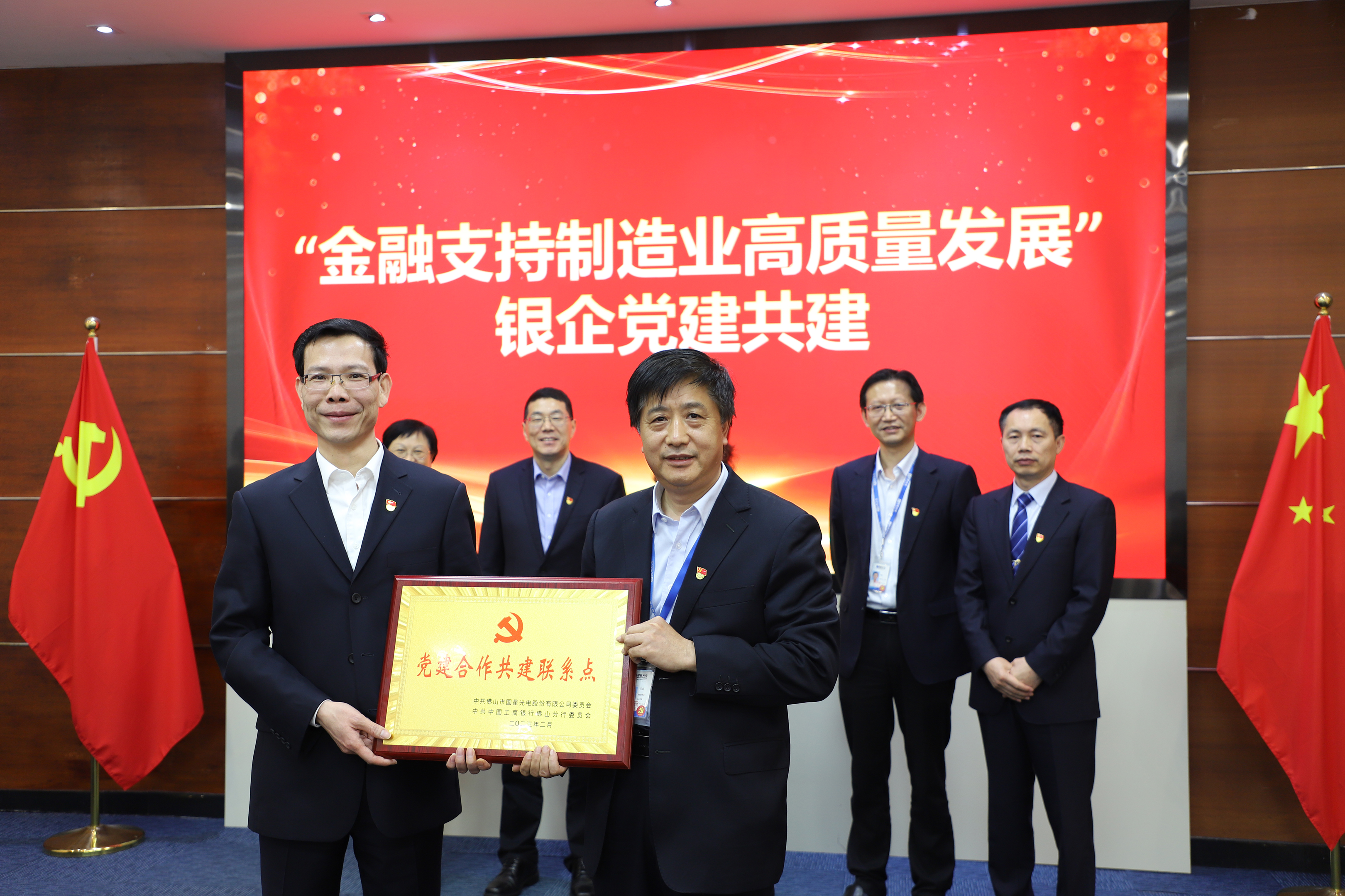 2月10日上午,开云online(中国)光电党委与中国工商银行佛山分行党委举行了党建共建授匾仪式并签订了战略合作协议,掀开了双方以党建引领,推动银企深度融合的新模式。中国工商银行广东省分行党委委员、副行长,兼佛山分行党委书记、行长童志军,佛山分行党委委员、副行长杨映珊,佛山分行党委委员、副行长李昕等领导,开云online(中国)光电党委副书记、董事、总裁李程,党委副书记、职工董事、工会主席万山,党委委员、副总裁李蒲林出席了活动。