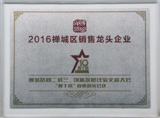 “2016禅城区销售龙头企业”奖