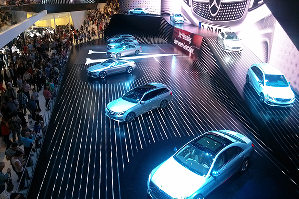 由透明LED显示屏呈现的“Mercedes me”标识冷酷霸气,尽显贵族气息。