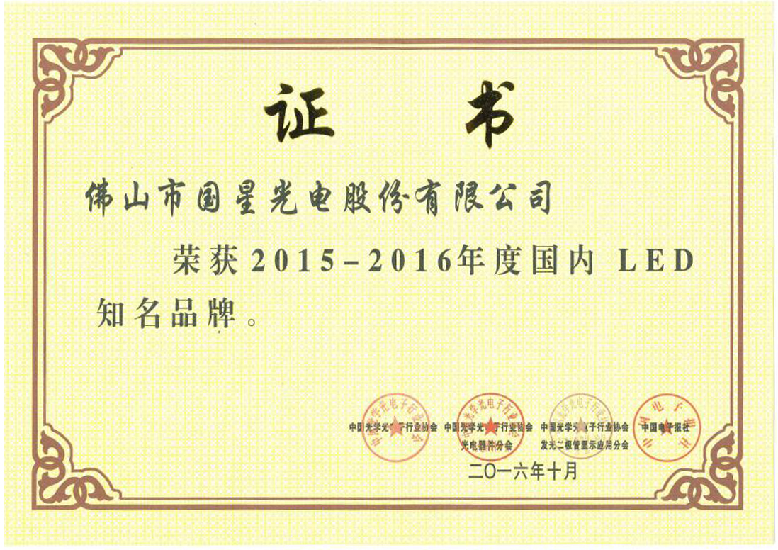 经过5个多月激烈角逐,开云online(中国)光电在国内众多LED企业中脱颖而出,荣获“2015-2016年度国内LED知名品牌”称号!