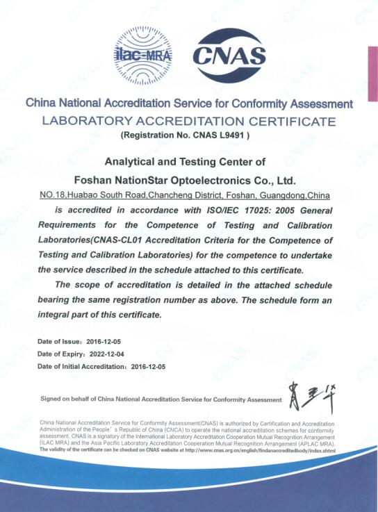 公司获得 CNAS 认可,标志着公司在技术能力和管理能力等方面又迈出了坚实的一步,这将进一步提升公司在 LED 行业的影响力及品牌认知度,持续提高产品的国际竞争力。
