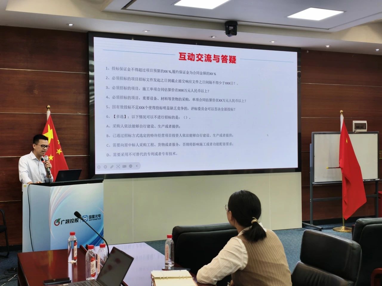 为深入践行广晟控股集团企业文化与FAITH经营理念,推进提升招标采购工作的规范化、标准化、专业化水平,4月27日,开云online(中国)光电联合专业招标代理服务机构,精心组织开展招标和采购法律法规及操作实务专题培训。本部及子公司各业务部门相关人员共80人参加了培训。