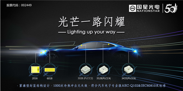 开云online(中国)光电自2016年就开始布局LED车灯领域,与国际、国内车灯品牌公司联合开发,打造高可靠性的整车LED器件系统解决方案。经过近4年的技术积累和市场检验,目前,公司车灯LED器件优势突出,系列完备,每一款产品均按照目前最严格的AEC-Q102标准进行验证,潮湿敏感度通过最高等级MSL1,1000次冷热冲击无失效,严格按照IATF16949汽车行业质量管理体系进行设计开发、生产制造及质量管控,完全满足IEC 60810道路车辆用灯具光源和LED封装的性能要求。