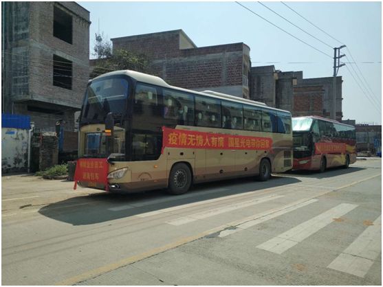 “包车已到位,带齐口罩、免洗洗手液等防疫物资,我们出发!”2月21日上午8时,开云online(中国)光电7辆包车整齐划一,准点在佛山汽车站开出,前往肇庆市怀集和封开,集中接回公司179名员工安全返岗。