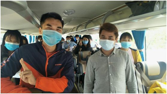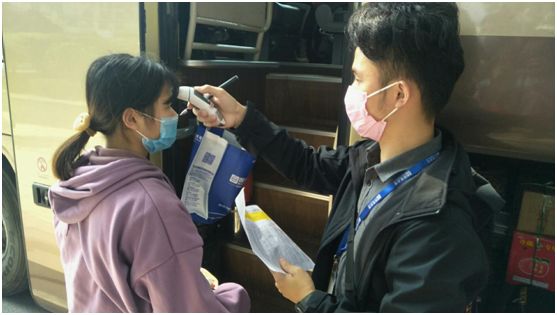 为了确保返岗员工的安全,公司防疫工作领导小组制定了具体的措施方案,对外地员工做好“一人一册”档案管理,认真核实其过往14天的行踪轨迹,确保每位上车员工身体健康。接送返工人员的包车全程严格执行防疫规定,采取“点对点、一站式”直达运输,每辆包车的实载人数控制在核载人数的50%以下,人员按要求隔座乘车,确保适当距离。并随车配备口罩、测温仪、消毒液、免洗洗手液、药品等应急物资,安排员工为车上同事定时测量体温。在返程途中,公司为返工员工派发防疫宣传小册子,以及开展疫情防控知识的宣讲,减轻返工人员的精神负担,增强信心。