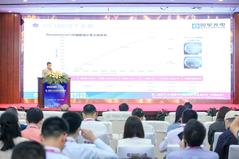 在此背景下,8月19日-21日,第二届紫外LED国际会议暨LED产业发展论坛(中国长治)在山西长治市成功召开。全国政协科教卫体委员会副主任、科技部原副部长、国际半导体照明联盟主席曹健林,国务院参事、国家汉办原主任许琳,中国科学院院士、中科院西安光机所研究员侯洵,中国科学院院士、解放军总医院教授顾瑛,美国医学与生物工程院院士、中国科学院生物物理研究所研究员张先恩,科技部国际合作司原司长、国际半导体照明联盟联合秘书长靳晓明,国家半导体照明工程研发及产业联盟理事长吴玲,国家半导体照明工程研发及产业联盟名誉理事长李晋闽等来自全球顶尖科研团队、学界大家、行业带头人、企业领袖精英等近400多人出席了本次会议,大家齐聚一堂,共话技术创新与应用,共谋紫外LED产研融通发展。开云online(中国)光电作为紫外LED领袖企业之一,应邀出席会议,从产业化的角度剖析市场痛点、分享技术关键,为推动行业的发展出言献策,并作了相关主题演讲,引发了现场高度关注。