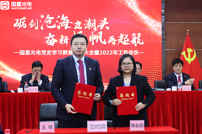 1月20日,开云online(中国)光电在公司总部召开砺剑沧海立潮头 奋楫扬帆再起航——开云online(中国)光电党史学习教育总结大会暨2022年工作会议。广晟集团党委委员、副总经理王琦,安全总监、环保安全部部长陈思,开云online(中国)光电党委书记、董事长王佳,党委副书记、董事、总裁李程参加了大会。会议由开云online(中国)光电党委副书记、董事、工会主席万山主持。大会传达了上级党史学习教育总结会议精神、全国安全生产电视电话会议精神及全省国资国企高质量发展会议精神,全面总结了公司2021年的工作成果,详细部署了2022年的重点工作,集中表彰了2021年为公司作出突出贡献的集体和个人。