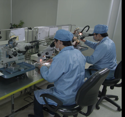 他们将一个个LED发光芯片用比头发丝还要细小得多的金属线连接起来,这需要足够的细心和耐心,而很多人在这里已经工作了十几年。