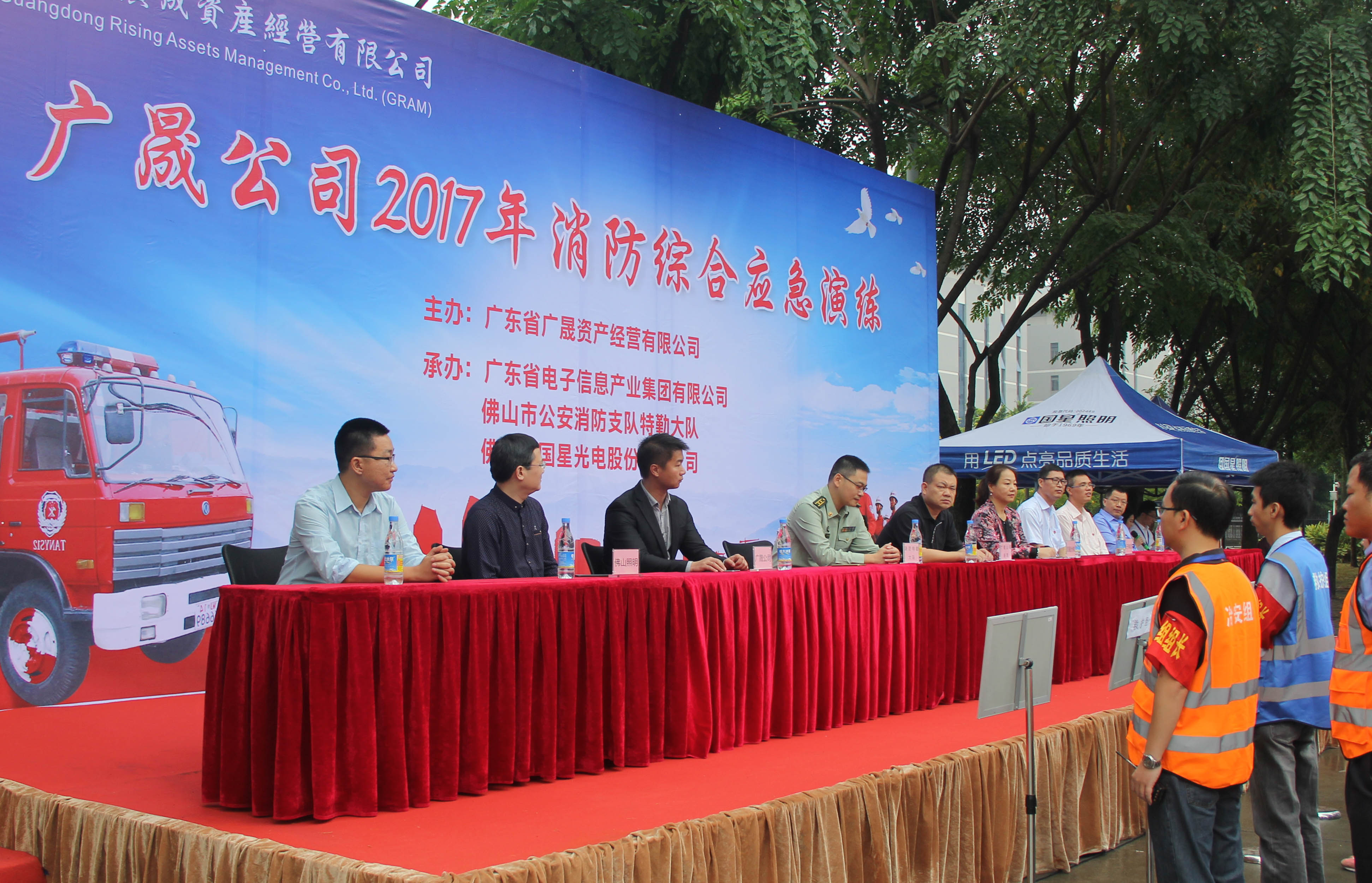 11月14日上午十点,广晟公司“2017年消防综合应急演练”在开云online(中国)光电举行,广晟公司环安部陈思副部长担任总指挥,囯星光电副总经理李奇英担任副总指挥。演练在广晟公司的指导下,电子集团和佛山市公安消防支队特勤大队的配合下圆满完成,演练分两阶段进行,首先由开云online(中国)光电公司应急救援小组展开自救,随后由佛山市公安消防支队特勤大队展开专业救援。通过演练,大大提高了广大员工的消防安全意识和逃生自救能力。