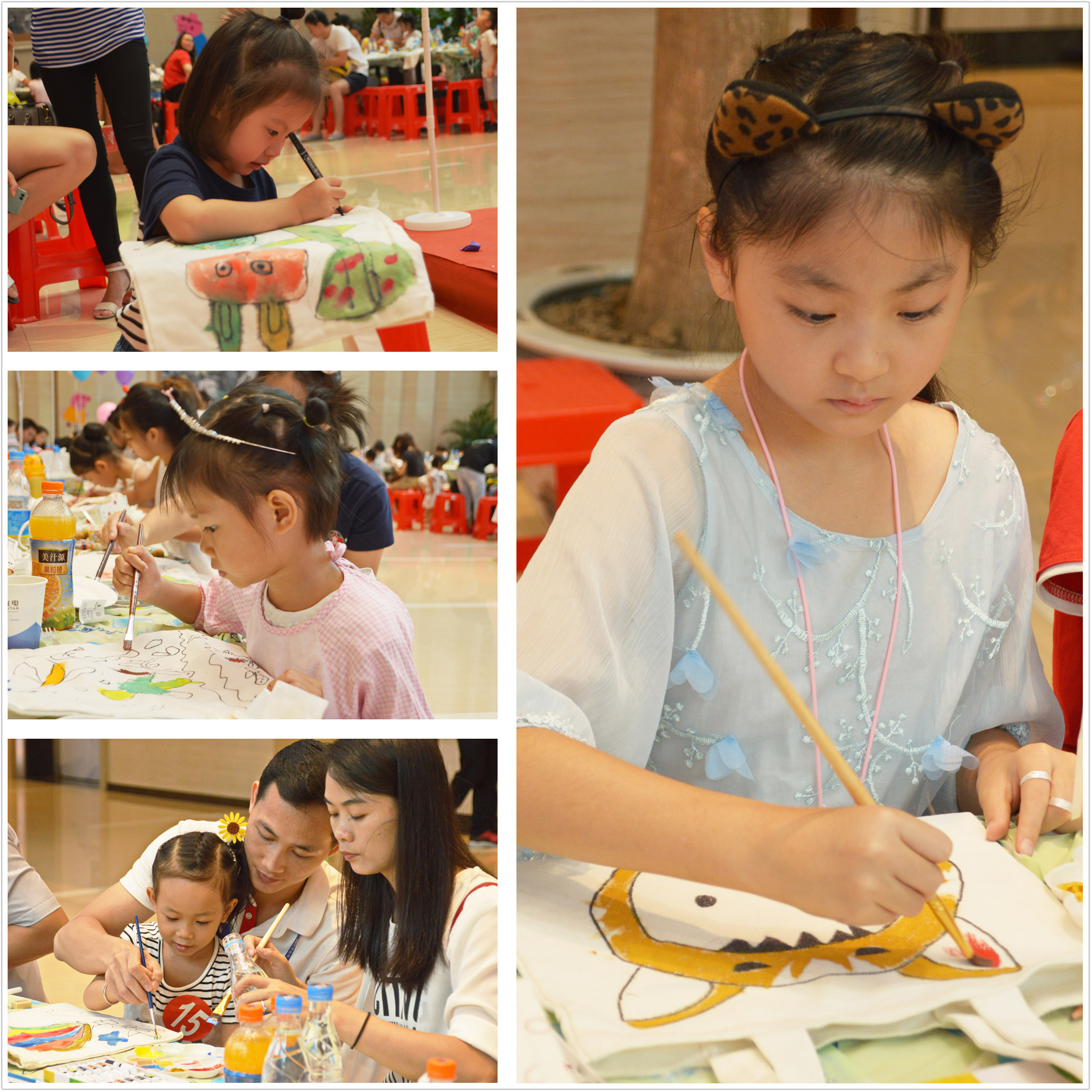 在环保袋DIY环节,工作人员向现场小朋友派发工具、逐一耐心讲解,小朋友和家长迫不及待,一同畅享手工的乐趣。一个袋子,一盒画笔,尽情挥洒无限的想象力和创意,他们在环保袋上涂鸦出各色各样的图案,栩栩如生的动物、美丽宜人的风景、温馨可爱的漫画等等。通过环保袋DIY活动,孩子们也学习到了绿色环保的理念,在欢乐的劳作中收获了浓浓的亲子情。