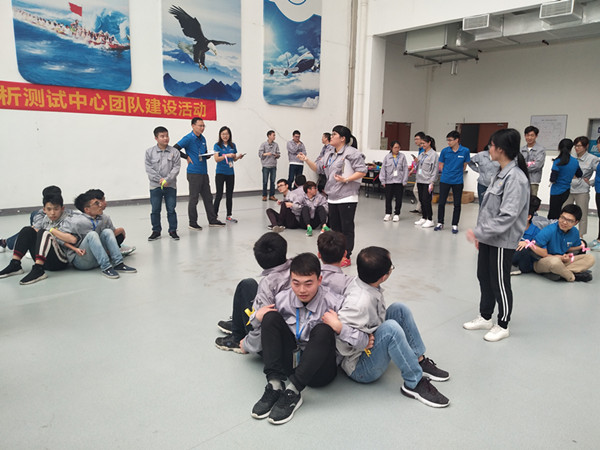 春日融融,人心暖暖,团队建设活动在主持人的一声令下正式拉开帷幕。此次活动分为四个小组:照明实验组、可靠性实验组、计量组、光电检测组,其中党员随机分配在4个小组当中。活动中,共设置了“坐地起身”、“珠行万里”和“驿站传书”三个项目。比赛采取积分制形式,支部书记担任裁判。活动过程中,在党员们的积极带领下,分析测试中心成员全心投入、群策群力、互助互信、积极沟通,充分发挥团队协作精神,克服重重困难,成功完成每一个项目。经过重重比拼,照明实验组荣获本活动第一名。
