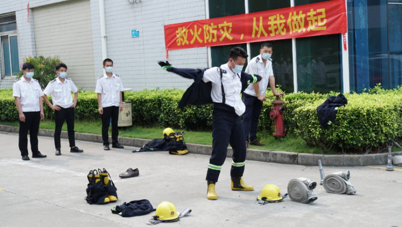 消防工作是安全生产的重要一环,保安队作为公司义务消防队,肩负着公司消防工作的重任。为检验保安队是否熟练掌握灭火技能,行政办选定穿戴消防服装及抛水带为比赛项目开展技能竞赛。随着裁判员的一声令下,参赛人员迅速到位,动作规范娴熟,干净利落,以规范动作在限定时间内完成比赛项目,展现出过硬的消防业务素质和消防业务理论功底。