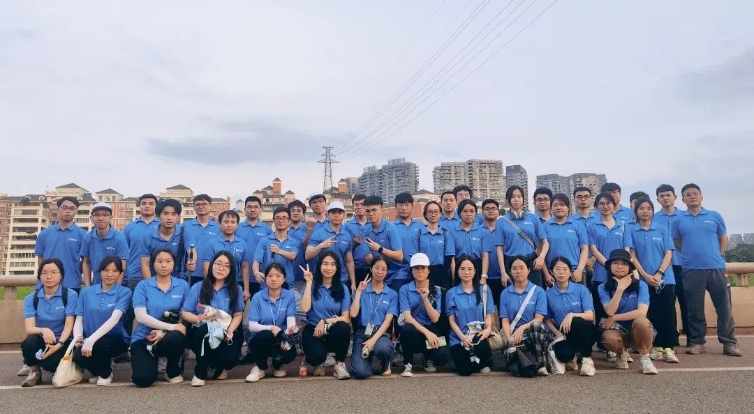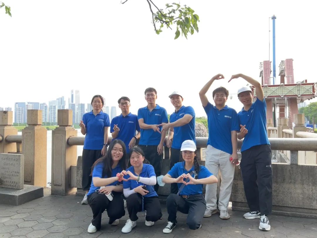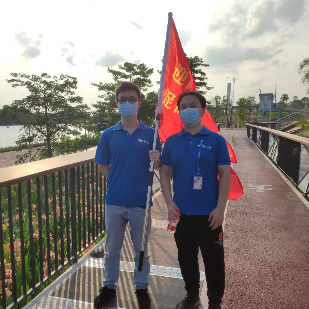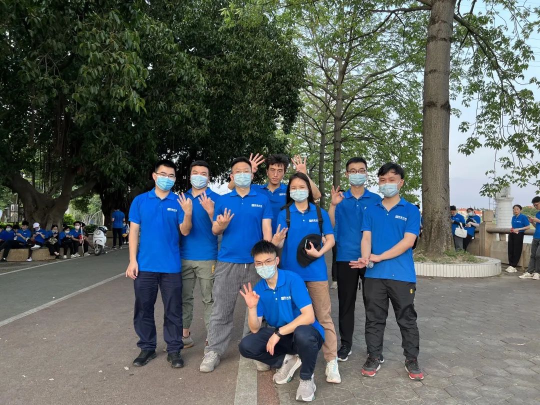 4月28日下午,开云online(中国)光电的青年党员、青年入党积极分子和2021年优秀大学生学员40余人高举飘扬的鲜红旗帜,浩浩荡荡向着石湾湿地公园前进。东平河边出现了一道“青春风景线”。