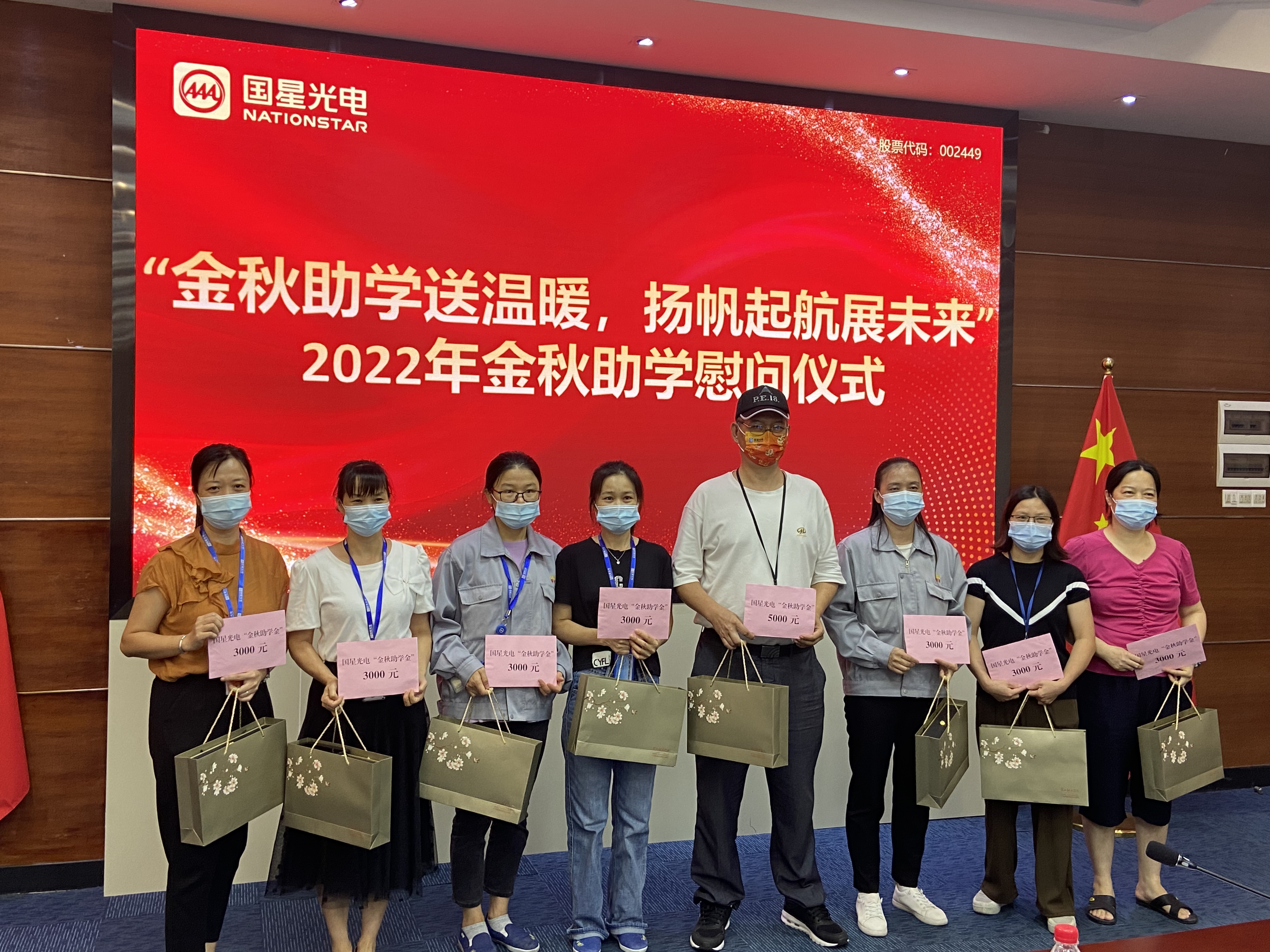 金秋筑梦,圆梦启航。为持续把“我为群众办实事”实践活动落到实处,进一步营造良好的人文关怀氛围,中秋佳节来临之际,9月8日,开云online(中国)光电组织开展了2022年“金秋助学”慰问活动,为困难职工送上2022年金秋助学金并致以节日的慰问。开云online(中国)光电党委副书记、工会主席万山出席了活动,为9名职工子女发放了共计2.9万元的助学金及中秋慰问品。