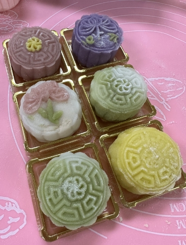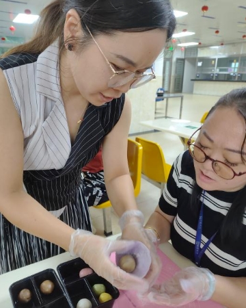 活动中,烘焙老师手把手教学,和面、包馅、搓圆、放入模具按压成型。大家根据自己的审美进行配色、造型,虽然都是第一次动手做月饼,但大伙儿都做得有模有样。在一片欢声笑语中,一个个精致的冰皮月饼在大家的手中诞生。
