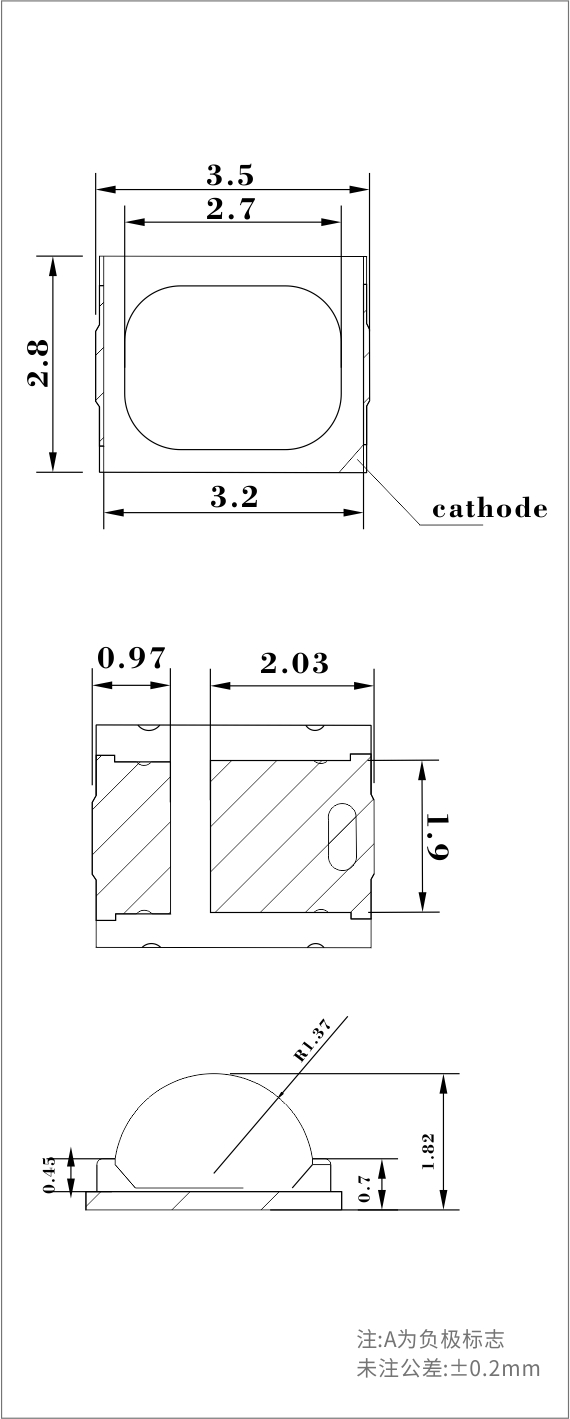 产品型号 | 峰值波长(nm) | IF(mA) TEST | 光功率(mW) | VF (V) Typ. |