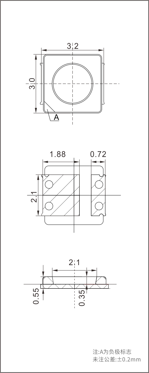 产品型号 峰值波长(nm) IF(mA) TEST 光功率(mW) VF (V) Typ.