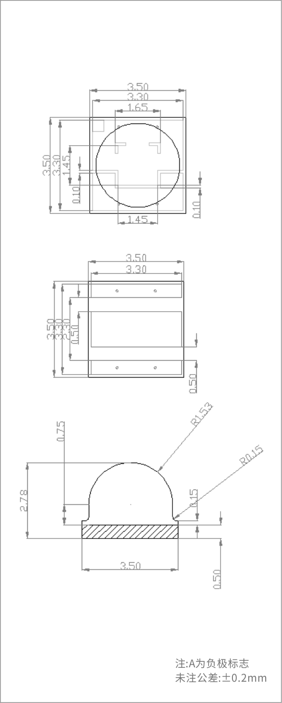 产品型号 | 峰值波长(nm) | IF(mA) TEST | 光功率(mW) | VF (V) Typ. |