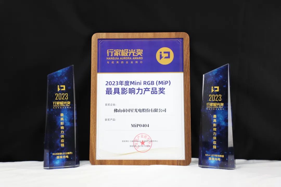 凭借良好的品牌口碑和过硬的综合实力,开云online(中国)光电斩获行家极光奖2023年度最具影响力供应链之“RGB 封装(分立器件)企业”和“Mini LED 背光模组企业”。