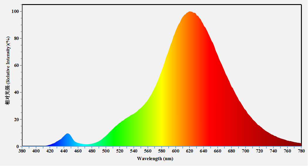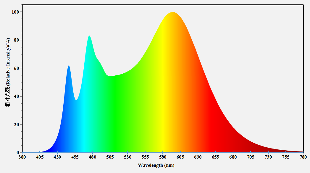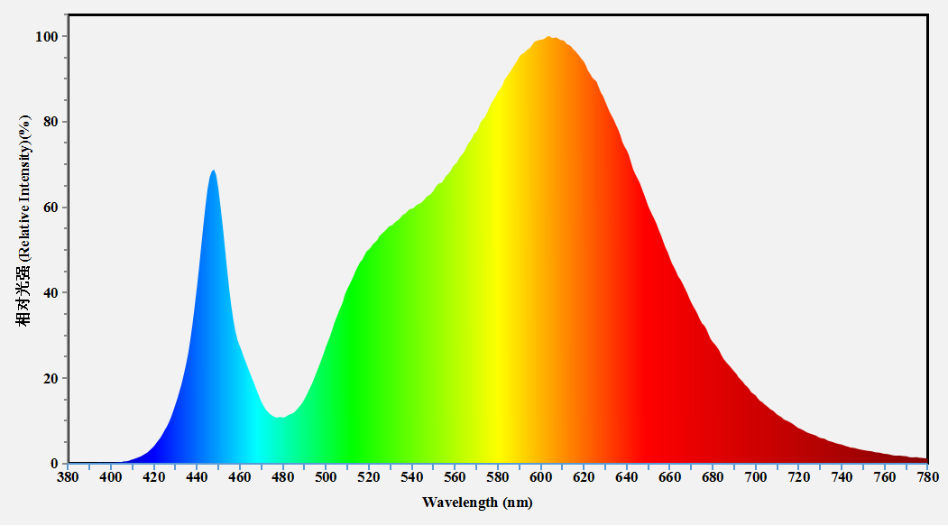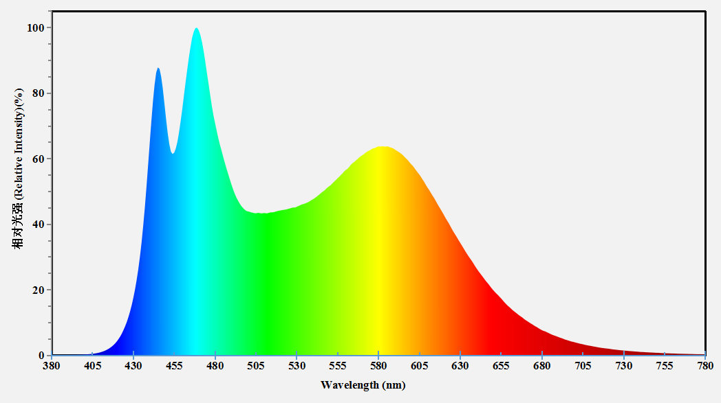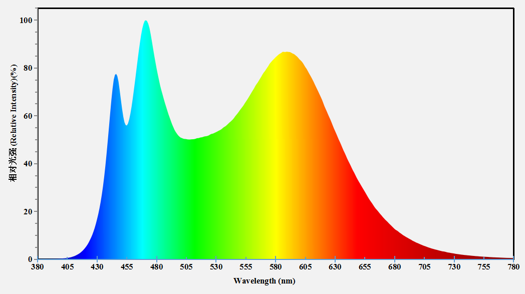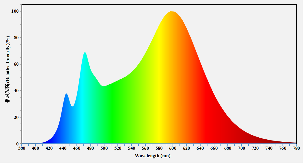 ● 补全青光、短波绿光和长波红光部分光谱后,光谱连续性与完整性显著提升,色域更广,更接近太阳全光谱;
