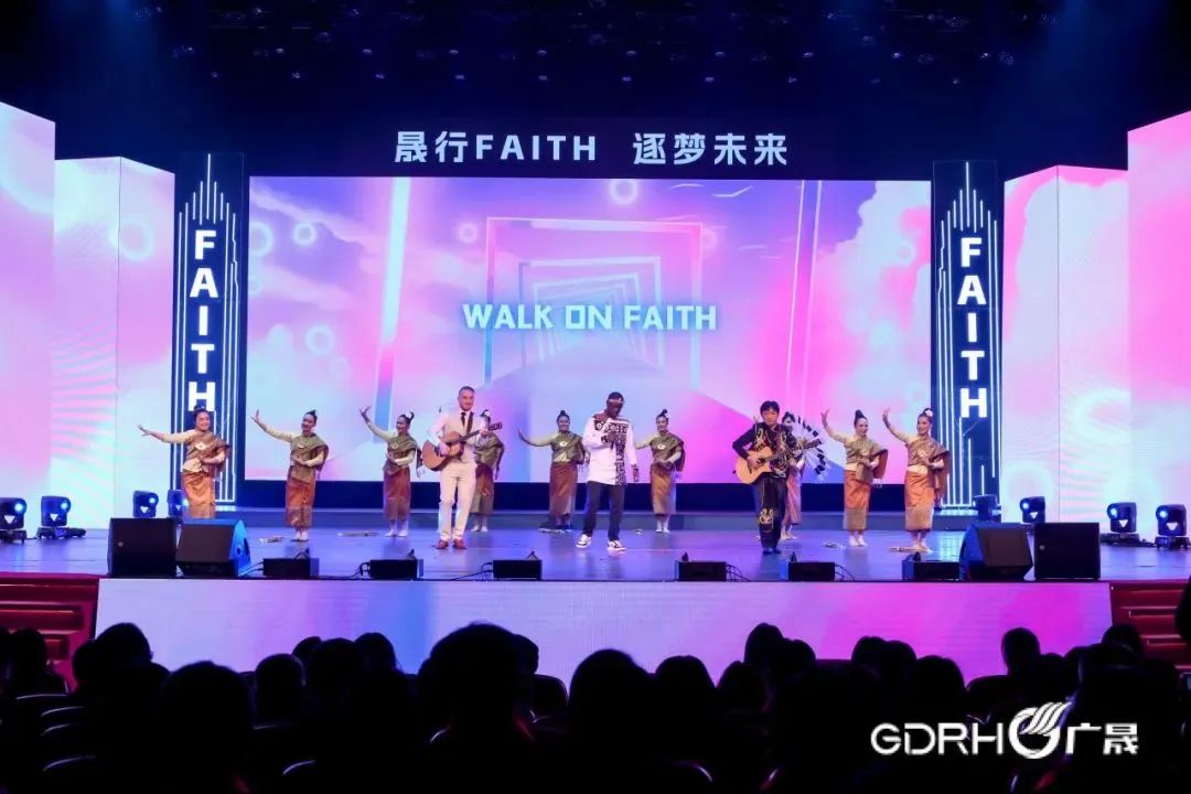 汇演活动上,吕永钟饱含深情地作了题为《以梦为马赴新程 不负韶华再出发》的致辞;汇演围绕“信·时代”“信·奋斗”“信·未来”三个篇章,激情演出了充满广晟企业文化特色、自编自导自演的《时代之问》《FAITH的力量》《新夫妻观灯》《梦想的翅膀》等文艺节目16个,涵盖歌曲、舞蹈、情景剧、小品、快板、朗诵等多种形式,节目精彩纷呈,现场气氛热烈,特别是来自澳大利亚、老挝、印度尼西亚、赞比亚等4个国家的境外员工表演的才艺秀《Walk On Faith》,以及《广晟之歌》和集团IP的隆重发布,把活动推向了高潮。