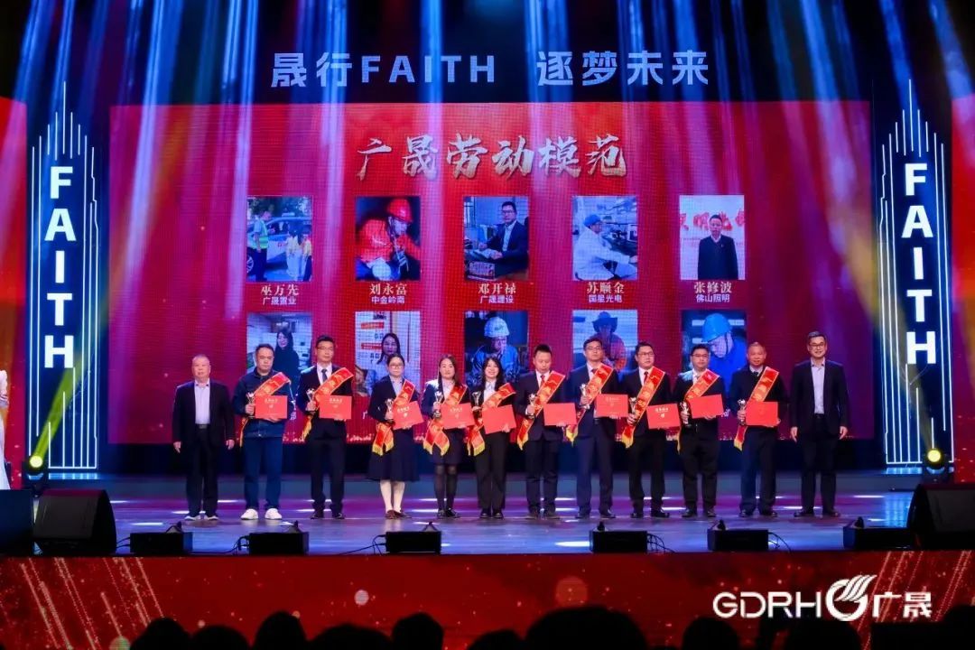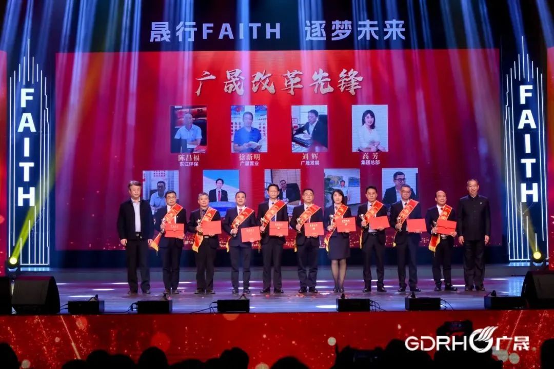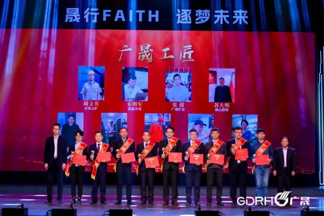 同时,为“广晟劳模”“广晟工匠”“创新菁英”“改革先锋”先进模范进行了颁奖,弘扬先进,树立典型。整个活动,是对发展历程的“深情回望”,激扬我们的初心使命;是重整行装再出发的“庄严宣誓”,检阅我们的豪情壮志;是践行FAITH、追梦未来的“嘹亮口号”,凝聚我们的磅礴力量。