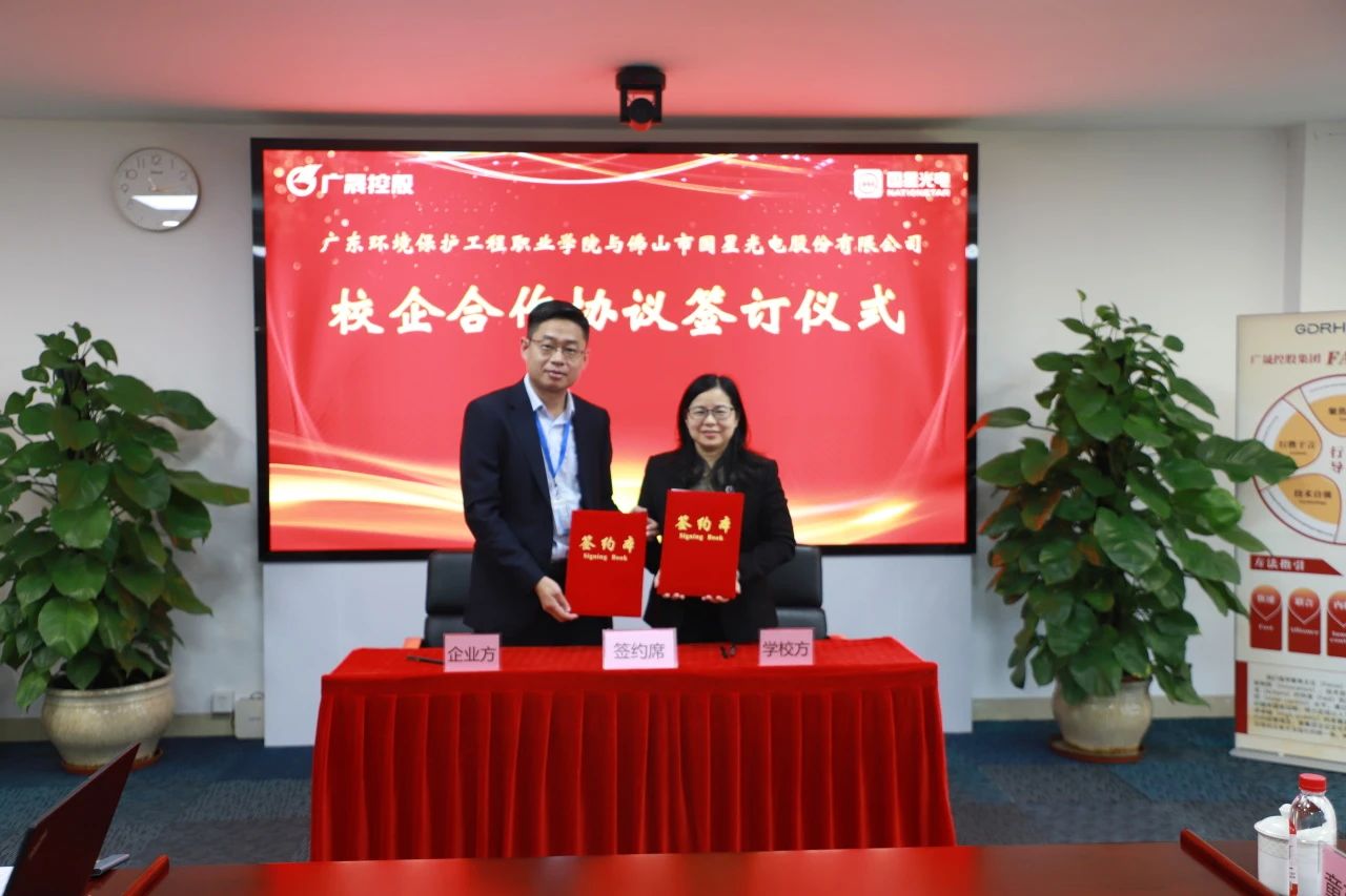 广东环境保护工程职业学院学工部和相关学院,开云online(中国)光电党建与人力资源部、企业文化部(工会办公室)、光电子器件事业部生产管理部等部门负责人、在企任职校友代表与学生代表参加签约座谈会。