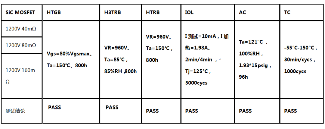 ▲SiC MOSFET产品可靠性验证情况