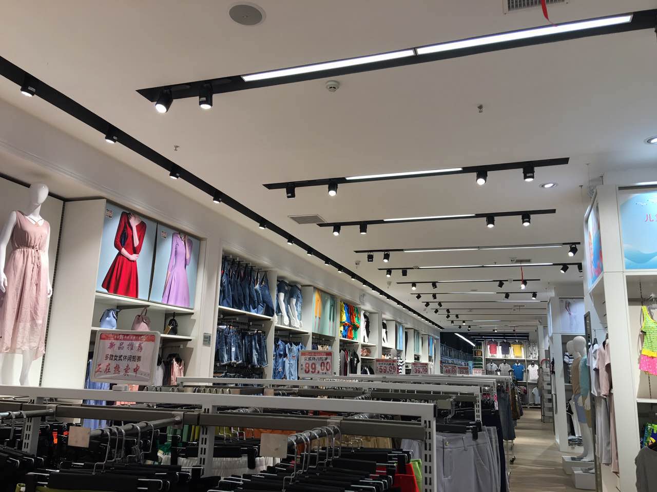 在轨道射灯的聚焦下,新款上市的女装设计时尚、优雅大方,有序布置的T8灯管将每个功能区都清晰分割,让消费者一目了然。