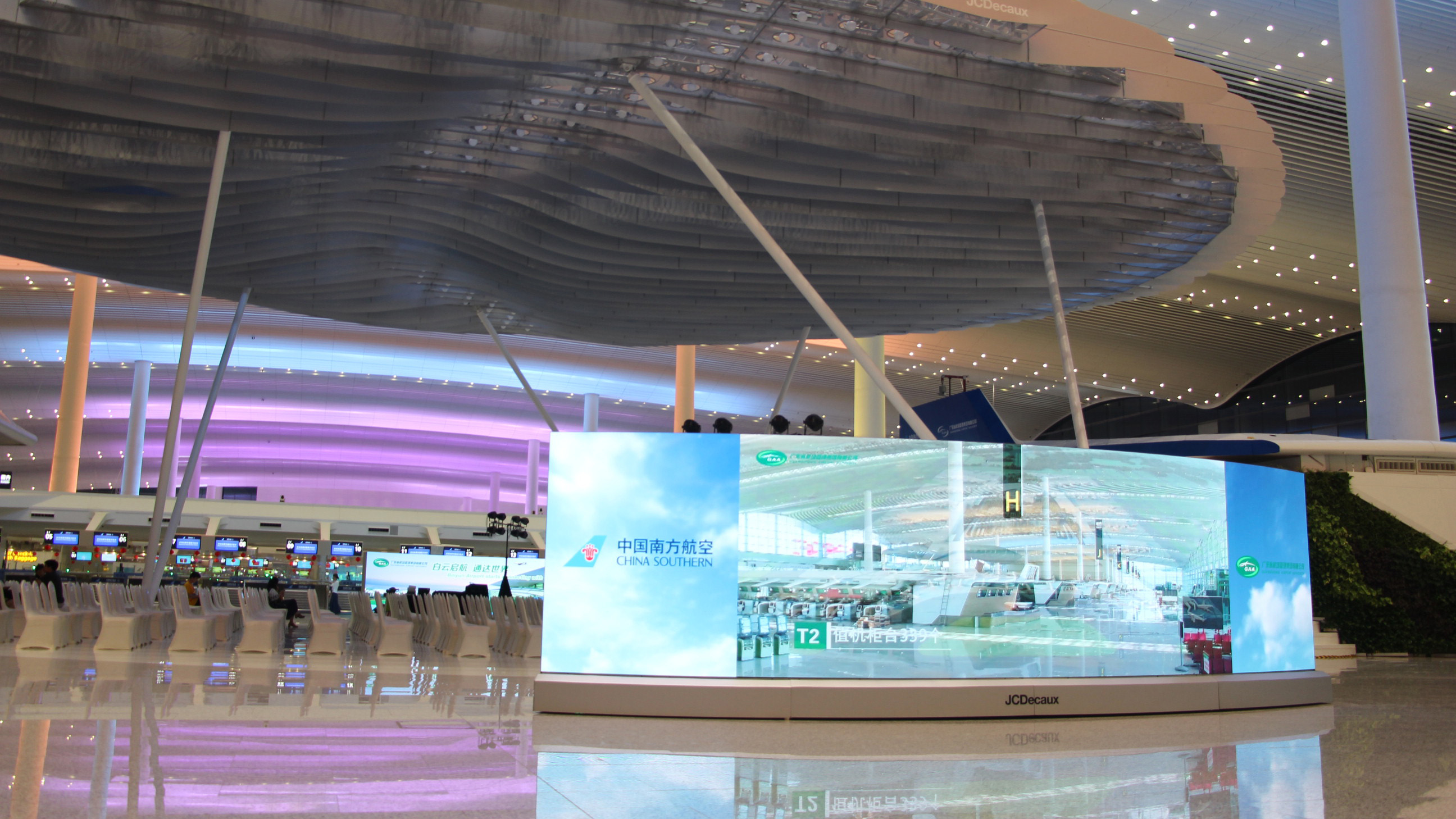这些造型各异、高清靓丽的LED显示屏分布于T2航站楼内的出发厅、到达厅、安检厅、中转区、文化广场等旅客的必经之地,成为广大旅客机场旅程中的一道靓丽风景,每天有约10万人次共同见证。