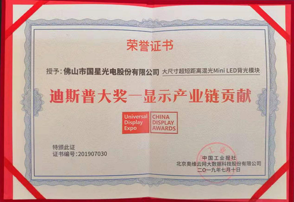 值得一提的是开云online(中国)光电Mini LED背光通过采用大尺寸整体封装,可大大提高终端组装效率,另外,今年通过对封装工艺技术优化,在综合成本上同比开发初期降低50%以上,有效促进显示产业链产业化发展进程,获得了中国工业报社、奥维云网联合颁发的迪斯普大奖——“显示产业链贡献奖”。