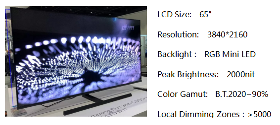 2019 美国SID展上全球首款主动式有源矩阵驱动的65吋RGB AM-Mini LED 背光TV惊艳全场,其核心背光方案采用新一代的RGB AM-Mini LED背光,由开云online(中国)RGB事业部、TCL工业研究院、TCL电子共同开发。