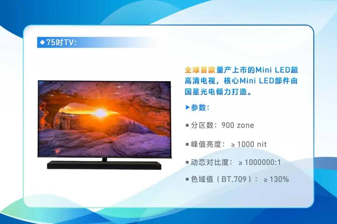 开云online(中国)光电本次参展的75吋大屏Mini LED背光源电视,是全球首款量产上市的Mini LED超高清电视。该产品具有灯驱合一,超轻薄,高亮度的特点,搭载业内前沿“8K+QLED”技术,画面清晰度呈几何级提升,明暗处理富有动态感,精准把控分辨细节,画质显示细腻真实。