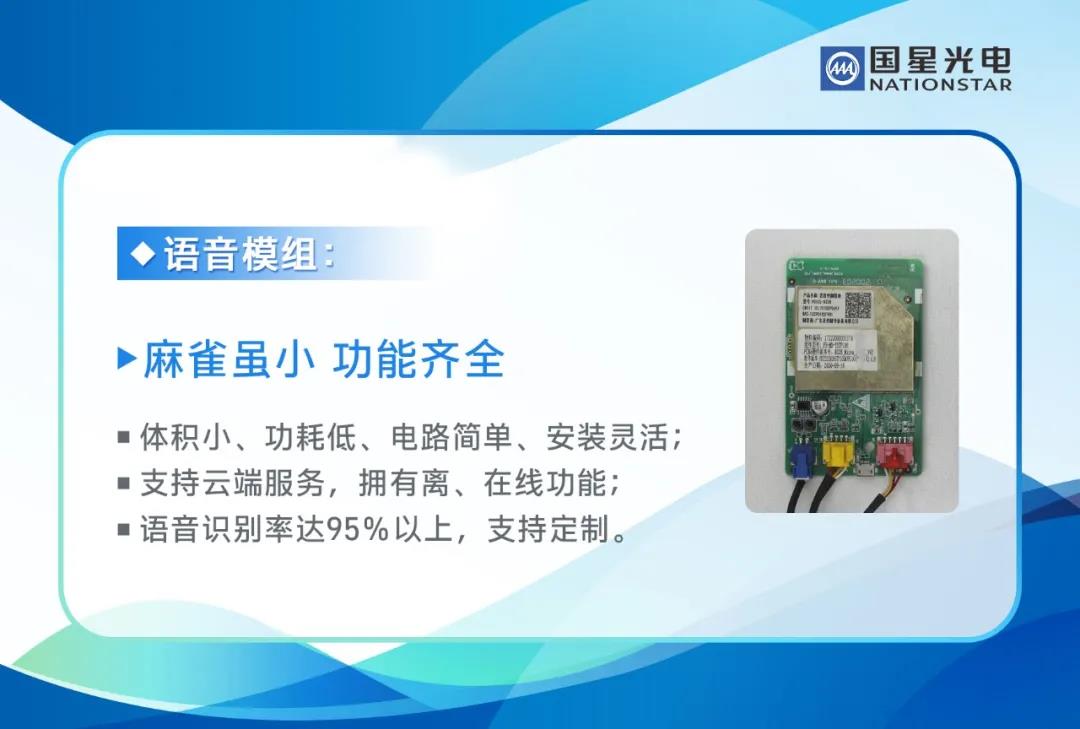 开云online(中国)光电新推出的语音模组可适配多种产品结构,具有云端控制、方言识别、超远程唤醒及声纹识别等特点,实现人性化交互设计,可应用于空调等家电。
